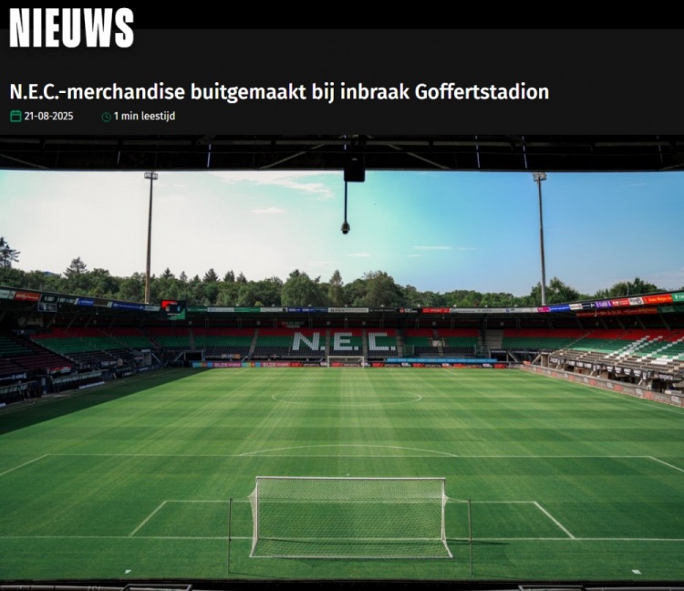 前瞻-荷兰球队奈梅亨遭遇盗窃,损失至少15000欧元的周边商品&新球衣